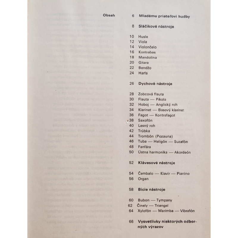 Kniha hravou a pútavou formou zoznamuje malých čitateľov so svetom hudby a hudobných nástrojov - sláčikové, dychové, klavírne, bicie, vysvetlivky odborných výrazov.