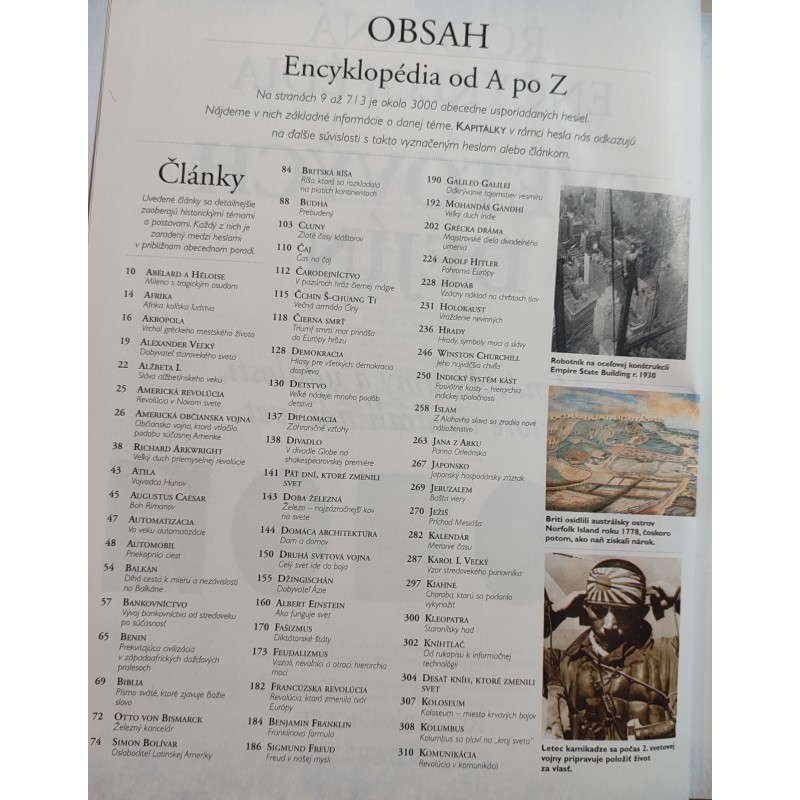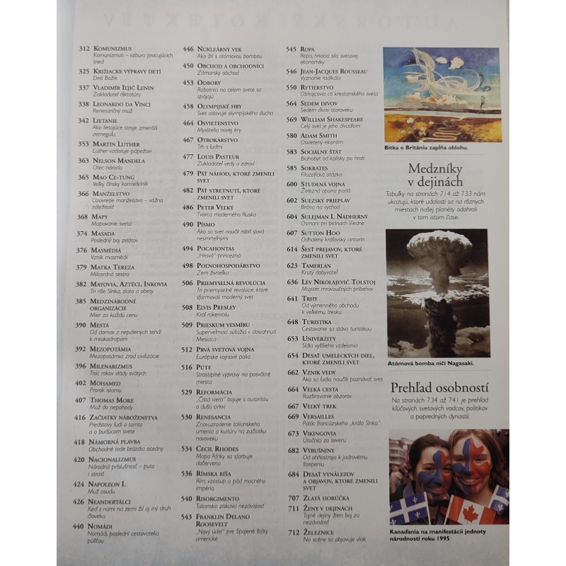 Predkladáme vám knihu, ktorá vás zavedie na dobrodružnú výpravu po bohatej ľudskej histórii...takmer 300 abecedne zoradených hesiel o kľúčových osobnostiach a udalostiach.