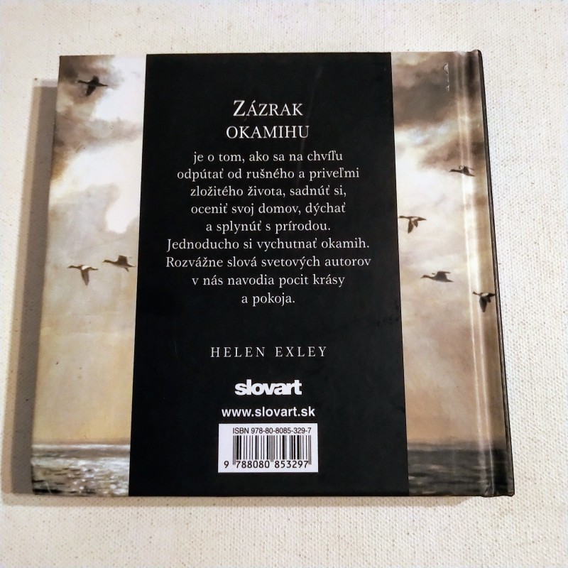 Ďalšia zo série darčekových knižiek, tentoraz hĺbavý dar na zamyslenie. Zázrak okamihu je o tom, ako sa na chvíľu odpútať od rušného a priveľmi zložitého života, sadnúť si, oceniť svoj domov, dýchať a splynúť s prírodou. Jednoducho si vychutnať okamih. Rozvážne slová svetových autorov vo vás navodia pocit krásy a pokoja.