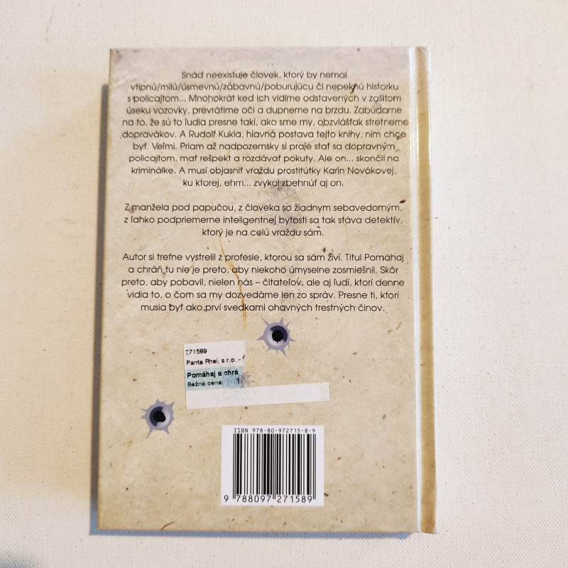 Autor si trefne vystrelil z profesie, ktorou sa sám živí. Titul Pomáhaj a chráň tu nie je preto, aby niekoho úmyselne zosmiešnil. Skôr preto, aby pobavil, nielen nás – čitateľov, ale aj ľudí, ktorí denne vidia to, o čom sa my dozvedáme len zo správ. Presne ti, ktorí musia byť ako prví svedkami ohavných trestných činov.