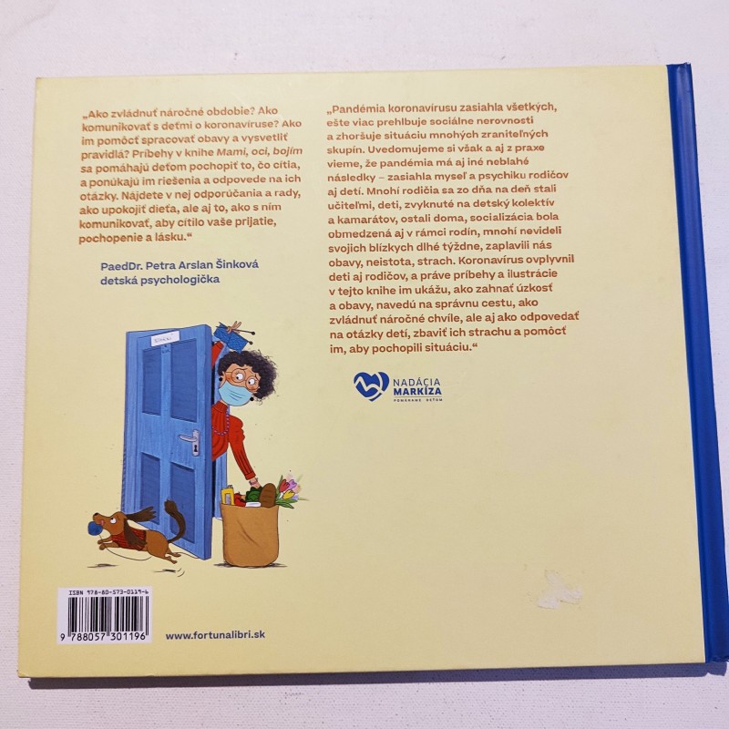 „Pandémia koronavírusu zasiahla všetkých a ešte viac prehlbuje sociálne nerovnosti a zhoršuje situáciu mnohých zraniteľných skupín. Uvedomujeme si však a aj z praxe vieme, že následky pandémie majú aj iný dopad – zasiahli myseľ a psychiku rodičov aj detí. Mnohí rodičia sa stali zo dňa na deň učiteľmi, deti, zvyknuté na detský kolektív a kamarátov, ostali doma, socializácia bola obmedzená aj v rámci rodín, mnohí svojich blízkych nevideli dlhé týždne, zaplavili nás obavy, neistota, strach. Koronavírus ovplyvnil deti aj rodičov a práve príbehy a ilustrácie v tejto knihe im ukážu, ako zahnať úzkosť a obavy, navedú na správnu cestu, ako zvládnuť náročné chvíle, ale aj ako odpovedať na detské otázky, zbaviť ich strachu a pomôcť im, aby pochopili situáciu.“