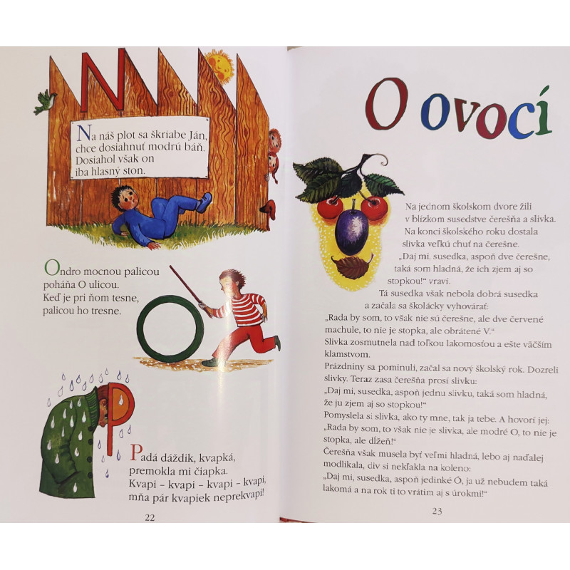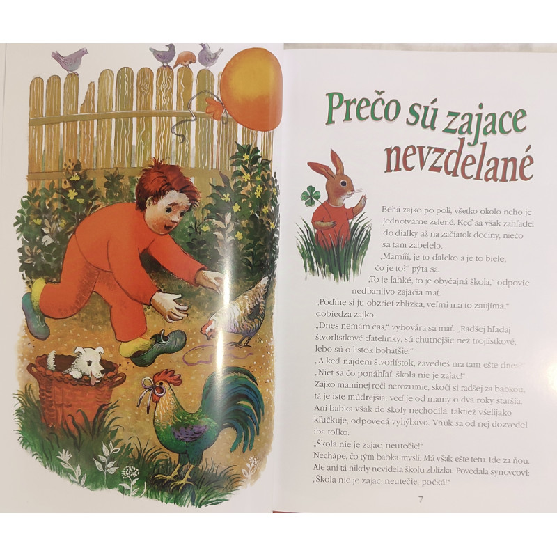 Krátke príbehy sú vytlačené väčším typom písma a doplnené veselými obrázkami.