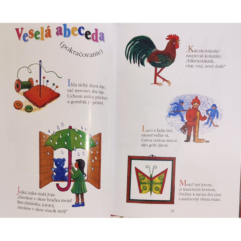 Knižka Veselí prváci je plná básničiek a príbehov pre najmenších prváčikov o veselých písmenách abecedy a číslach.