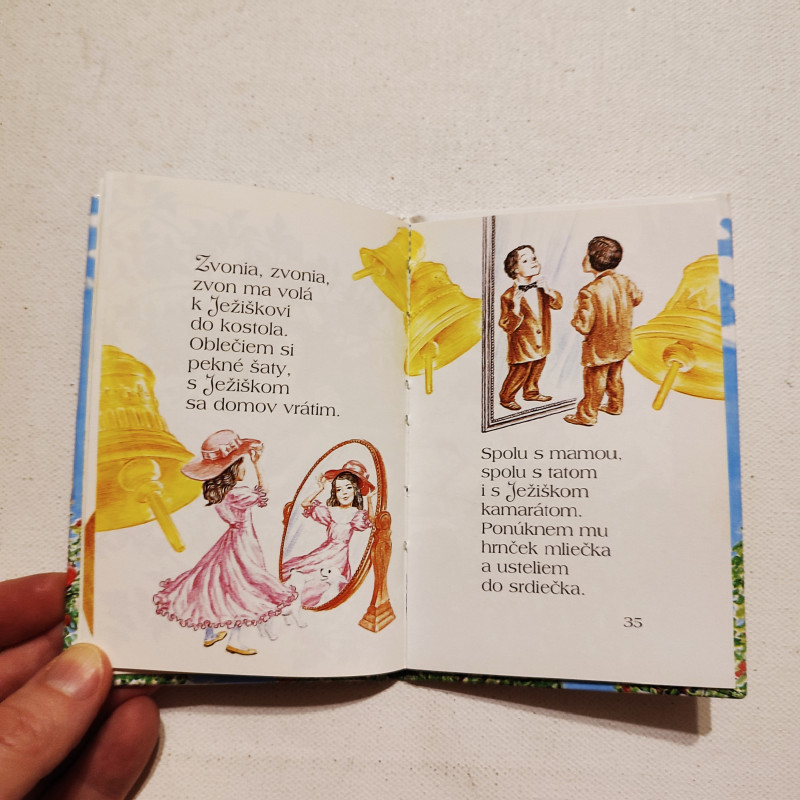 „Zvonia, zvonia, zvon ma volá k Ježiškovi do kostola. Oblečiem si pekné šaty, s Ježiškom sa domov vrátim.“