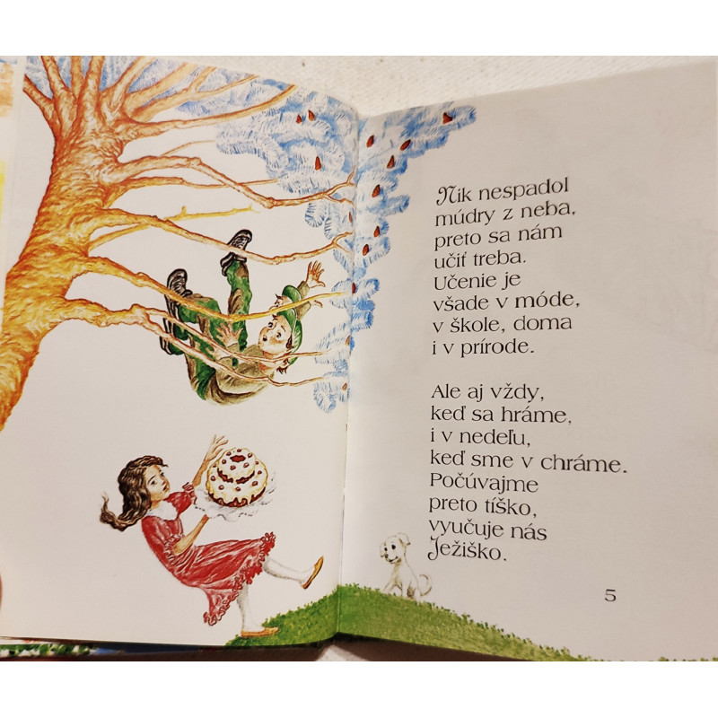 Milé detičky, vezmite si knižočku V Ježiškovej škole a spolu s rodičmi si prečítajte, čo vám chce Ježiško povedať: „Poďte, dietky, k Ježiškovi, rozprávočky vám hotoví. Podáva vám obe rúčky, poďte k nemu potichúčky.“