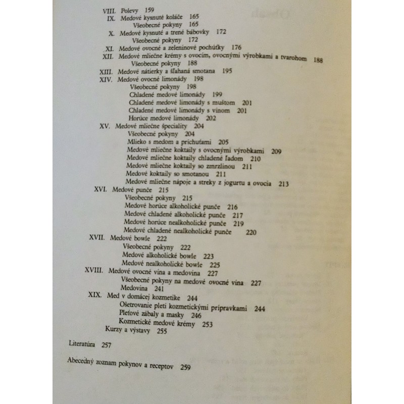 Kniha podrobne a odborne poučí čitateľa, ako všestranne zužitkovať med v domácnosti. V úvode informácie o mede, jeho história, druhy, hodnota medu, ošetrovanie medu, význam medu ako liečivej potraviny, pri rôznych chorobách, ďalej z histórie slovenského pernikárstva, pokyny na prípravu a pečenie perníkových ciest, zdobenie tradičnými slovenskými ornamentami, recepty (rôzne druhy perníkov, plnky, polevy, ovocie s medom, medové nátierky, limonády, punče, koktaily, medové vína, atď...