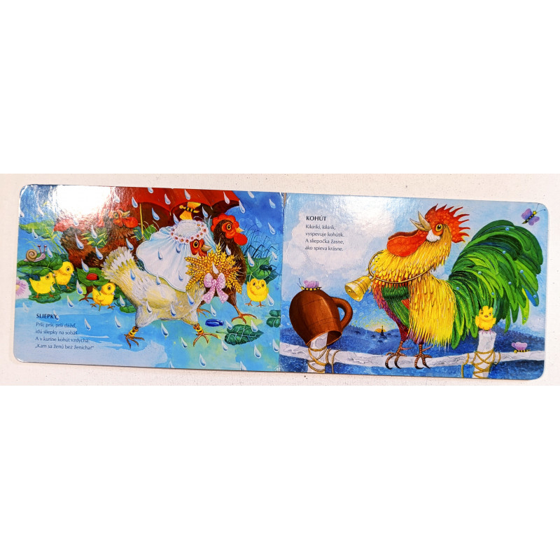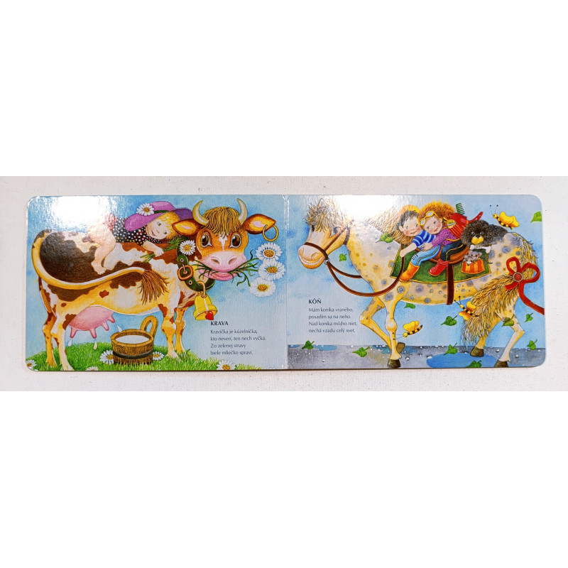 Leporelo s básničkami Jozefa Pavloviča a ilustráciami Viery Kardelisovej, vďaka ktorému deti spoznajú zvieratká na farme.