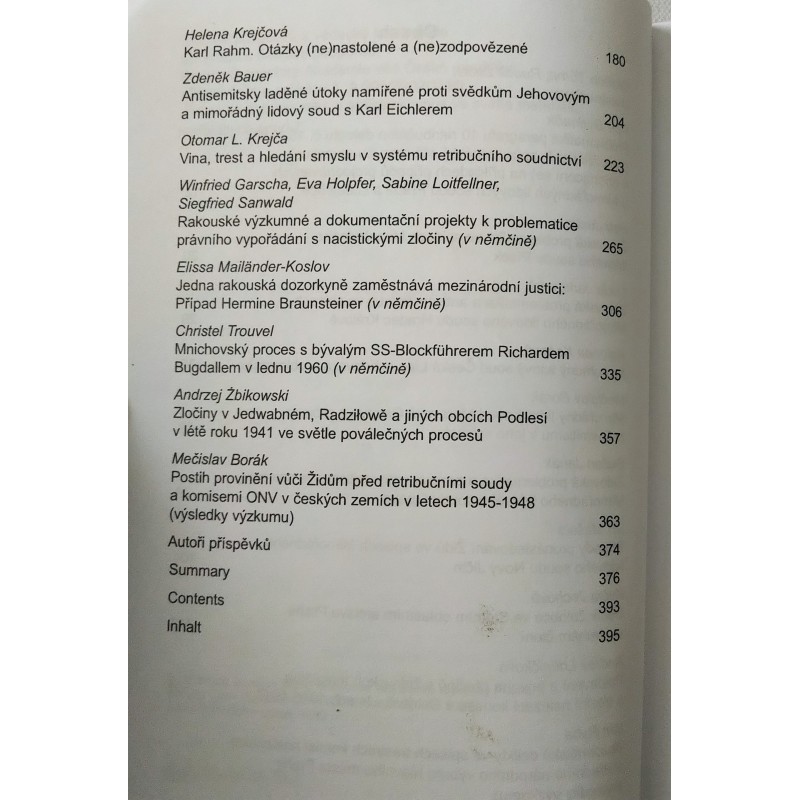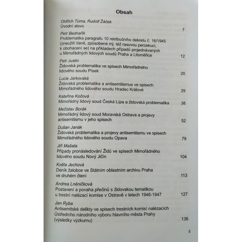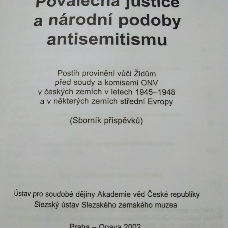 Poválečná justice a národní podoby antisemitismu. Postih provinění vůči Židům před soudy a komisemi ONV v českých zemích v letech 1945–1948 a v některých zemích střední Evropy: sborník příspěvků.