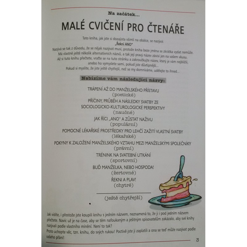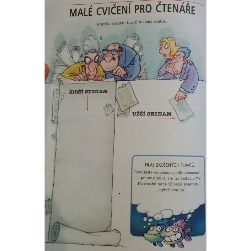 ....Nejen velmi vtipným a podareným dárkem, ale i výborným pomocníkem je tento stručný a zábavný průvodce, který seznámí snoubence se všemi peripetiemi, které je na cestě k oltáři čekají - od námluv přes svatební hostinu až po první dny společného života.