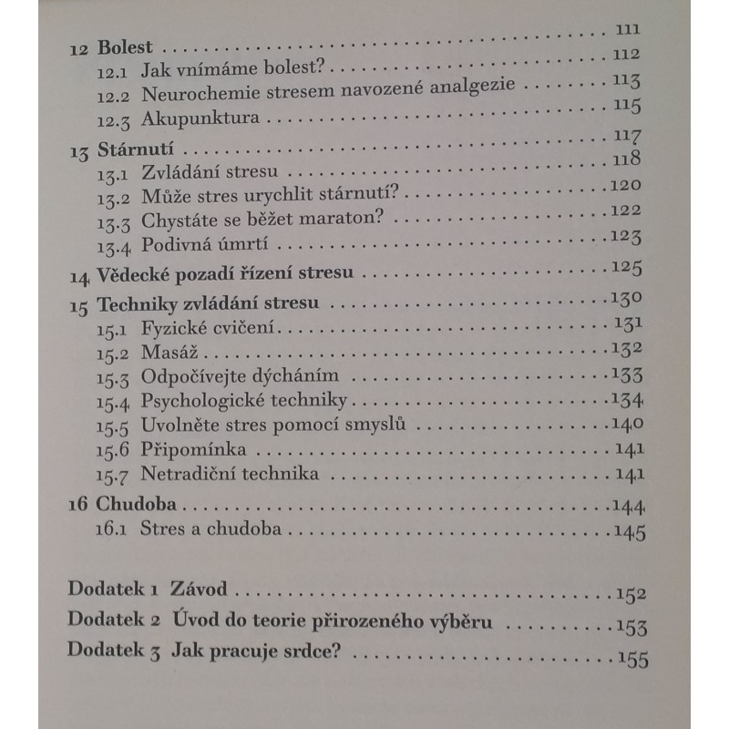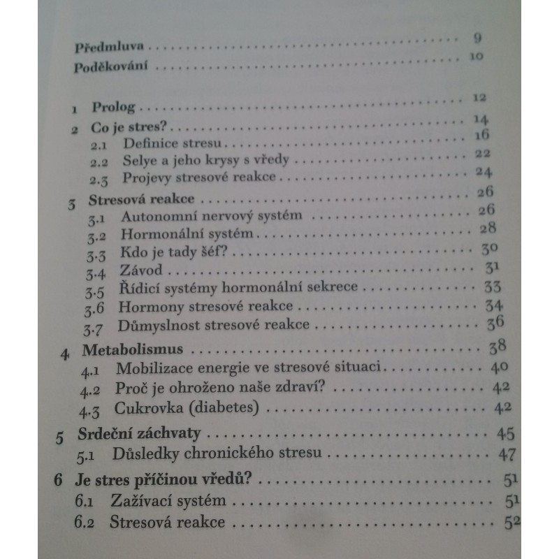 Kniha přináší komplexní pohled na stres a vysvětluje, jak stres ovlivňuje zdraví člověka. Autor popisuje mechanismy stresové reakce, které probíhají na úrovni nervového systému i endokrinní soustavy.