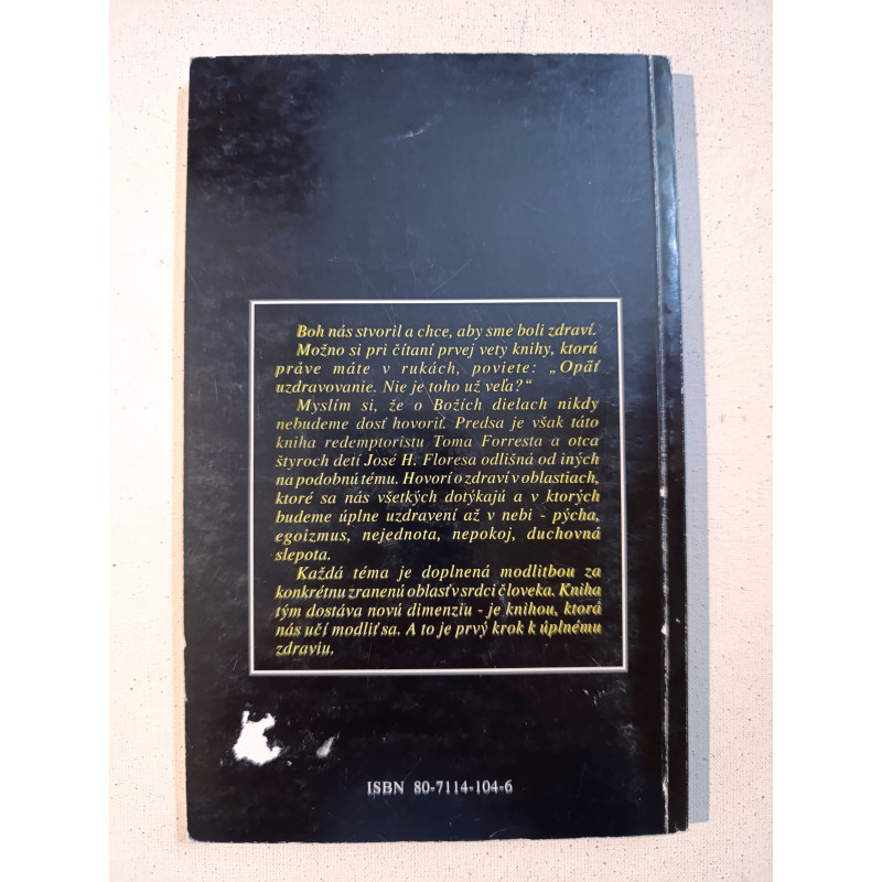Boh nás stvoril a chce, aby sme boli zdraví. Možno si pri čítaní prvej vety knihy, ktorú práve máte v rukách, poviete: „ Opäť uzdravovanie. Nie je toho už veľa?" Myslím si, že o Božích dielach nikdy nebudeme dosť hovoriť. Predsa je však táto kniha redemptoristu Toma Forresta a otca štyroch detí José H. Floresa odlišná od iných na podobnú tému. Hovorí o zdraví v oblastiach, ktoré sa nás všetkých dotýkajú a v ktorých budeme úplne uzdravení až v nebi - pýcha egoizmus, nejednota, nepokoj, duchovná slepota. Každá téma je doplnená modlitbou za konkrétnu zranenú oblasť v srdci človeka. Kniha tým dostáva novú dimenziu - je knihou, ktorá nás učí modliť sa. A to je prvý krok k úplnému zdraviu....