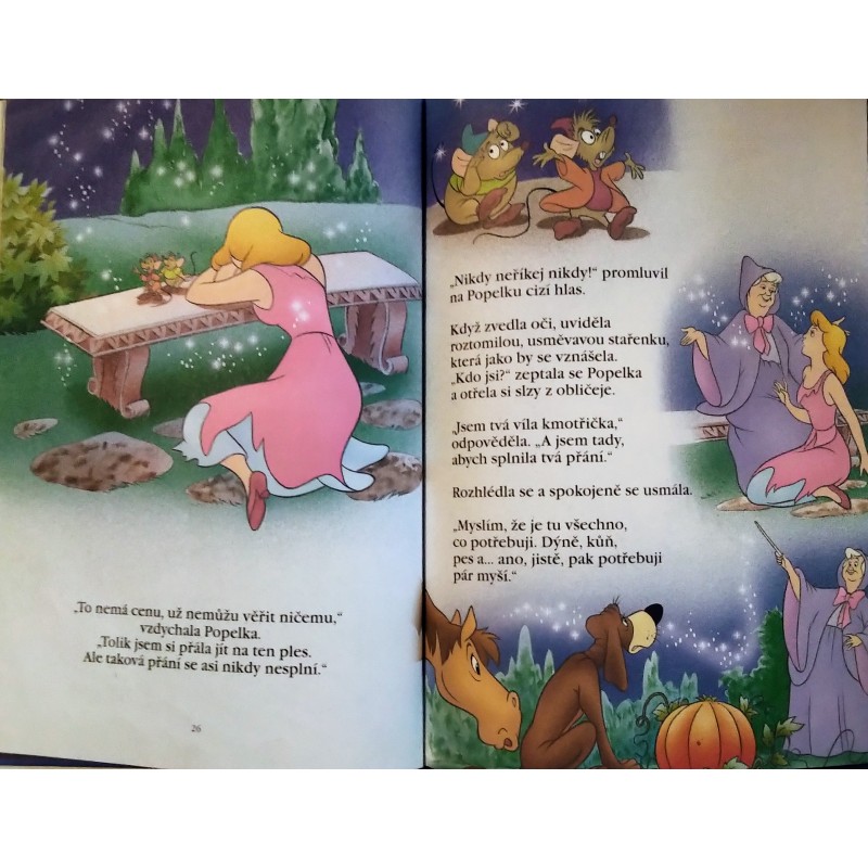 Krásná a hodná Popelka slouží maceše a dvěma nevlastním sestrám, které jí nepřejí nic dobrého. Naštěstí tu jsou zvířátka a víla kmotřička, kteří Popelce pomohou splnit její sen. Na plese potká prince, který se do ní zamiluje, a díky skleněnému střevíčku se vše v dobré obrátí...:-)