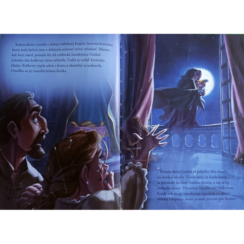 V opustenej veži žije krásna Rapunzel, ktorú tam uväznila zlá čarodejnica Gothel. Bohatstvom Rapunzel sú jej dlhokánske zlaté vlasy, ktoré majú kúzelnú moc: udržiavajú Gothel stále mladou a krásnou. Čarodejnica uniesla Rapunzel kráľovi a kráľovnej priamo z kolísky a teraz ju vo veži žiarlivo stráži. Tento krásny a smutný príbeh so spletitými osudmi svojich hrdinov rozpráva o nádeji a sile lásky. Lotri tu môžu mať zlaté srdce, zo zlodeja sa vykľuje záchranca a kôň dokáže podať pomocné kopyto...