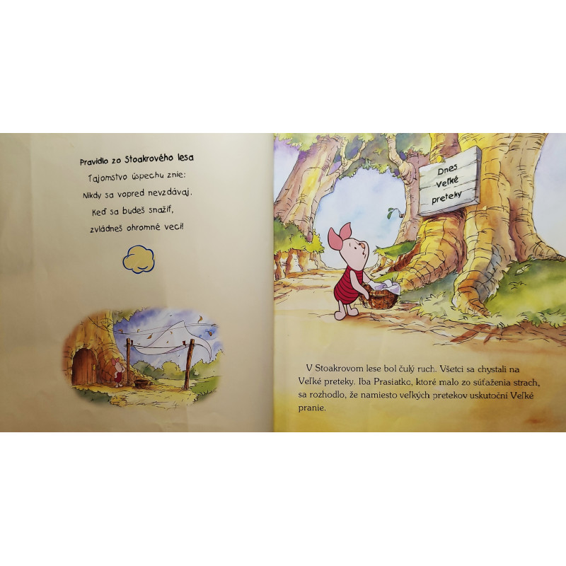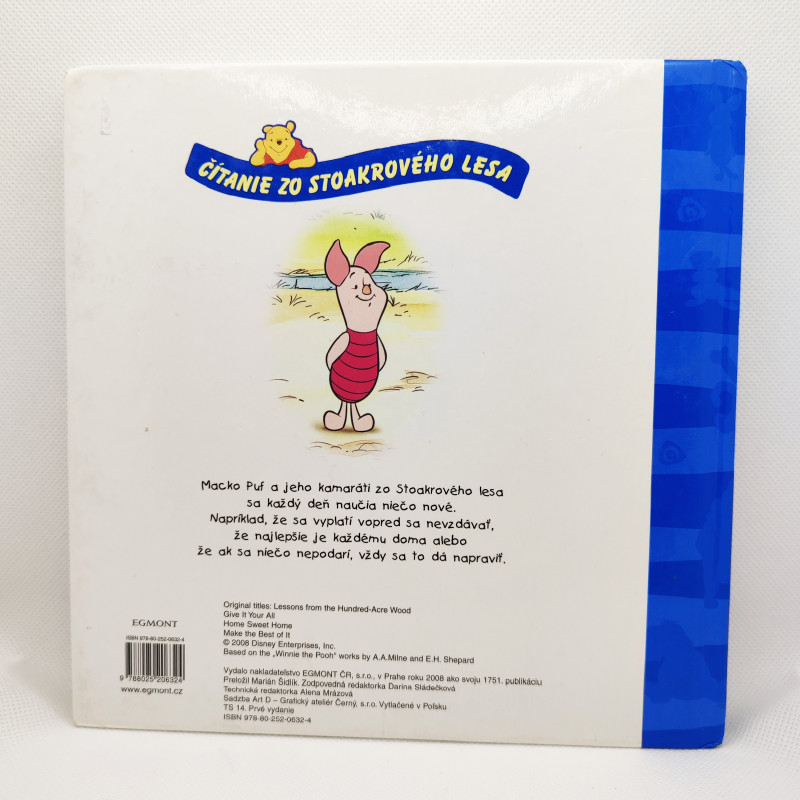 Macko Puf a jeho kamaráti zo Stoakrového lesa sa každý deň naučia niečo nové. Napríklad, že sa vyplatí vopred sa nevzdávať, že najlepšie je každému doma alebo že ak sa niečo nepodarí, vždy sa to dá napraviť.