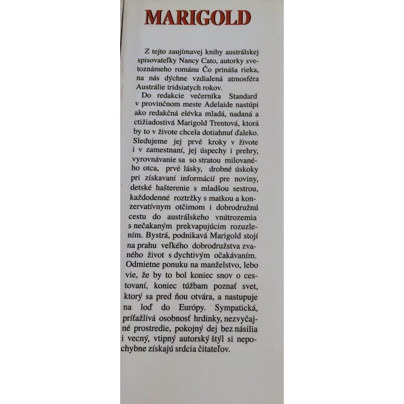 Marigold nastupuje do redakcie večerníka v mestečku Adelaide. Kniha ponúka jej životné osudy, jej lásky, roztržky s matkou. Jej život sa zmení, keď odmietne ponuku na vydaj a nastupuje na loď do Európy...