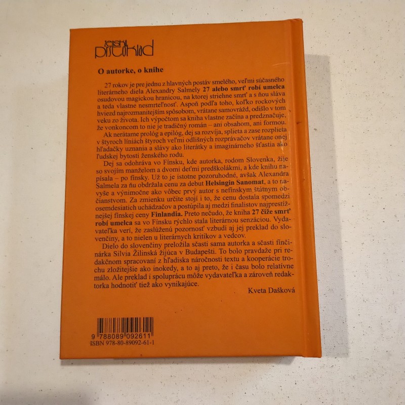 Autorka knihy je Slovenka, žijúca vo Fínsku. Román 27 čiže smrť robí umelca napísala po fínsky. Dostala zaň v roku 2011 cenu za debut a bola nominovaná aj na najvyššiu fínsku literárnu cenu. Jej román je mimoriadne dielo tak obsahom, ako i formou, kde hlavnými protagonistami sú rodina žijúca zo sociálnych dávok a mladá nedoštudovaná žena, ktorá prichádza do Fínska, aby tam študovala tamojší život a uplatnila svoje literárne ambície. Dej prebieha v štyroch rozprávačských líniách. Nie je to nenáročné čítanie, ale navzdory tomu vtipné, pútavé a čítavé.