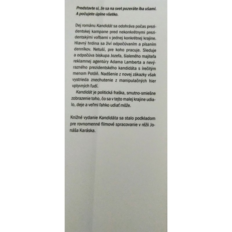 Knižné vydanie Kandidáta sa stalo podkladom pre rovnomenné filmové spracovanie v réžii Jonáša Karáska.