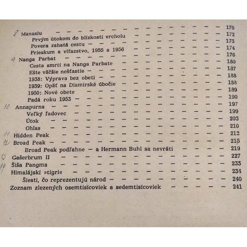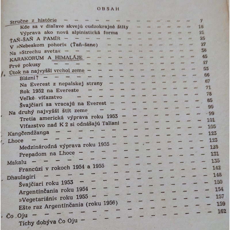 Témou tejto knihy je horolezectvo a alpinizmus. Autori objasňujú vývoj horolezectva od jeho najstarších čias až po heroický boj o dosiahnutie najvyšších štítov zemského povrchu (výpravy na Nanga Parbat, Annapurnu, K2, atď...)