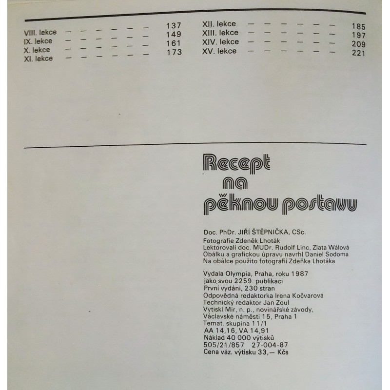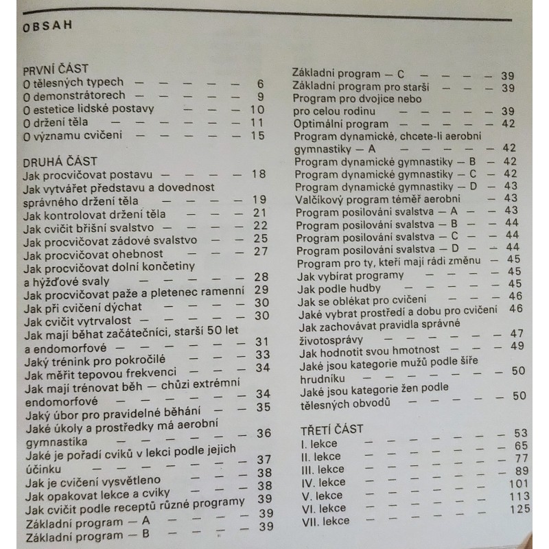 Kniha je příručkou domácí gymnastiky. Na závěr je 15 lekcí cvičení.