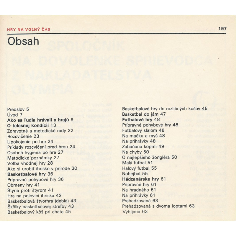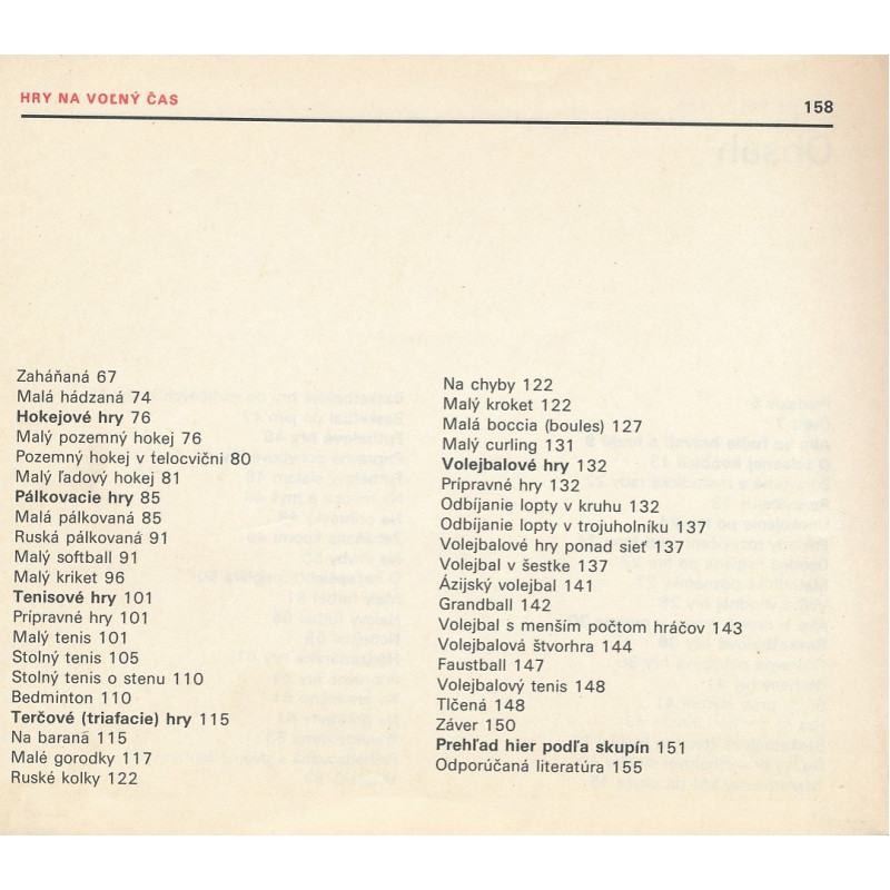 Táto vynikajúca kniha ponúka opisy, návody a techniky, ale aj zdravotné a metodické rady pre hranie rôznych typov športových hier ako napríklad basketbalových, futbalových, hokejových, hádzanárskych hier či volejbalových, pálkovacích a tenisových hier, terčových (triafacích). Pre uľahčenie pochopenia, kniha obsahuje kresby hracích plôch s patričnými rozmermi, kresby konštrukcií a náčinia ako aj znázornenie herných činností.