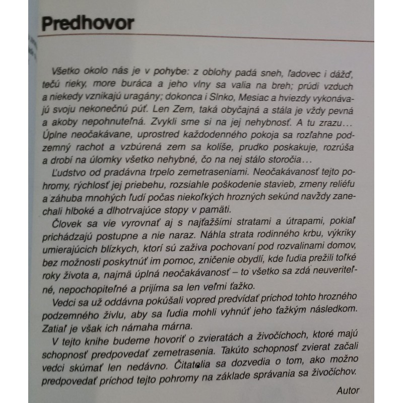 Príčiny vzniku zemetrasenia, správanie živočíchov pred zemetrasení, atď...