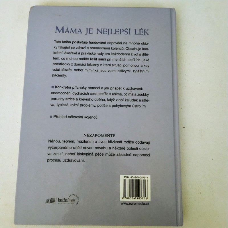 Tato kniha poskytuje fundované odpovědi na mnohé otázky týkající se zdraví a onemocnění kojenců. Obsahuje konkrétní lékařské a praktické rady pro každodenní život s dítětem: co mohou rodiče řešit sami při menších obtížích, které prostředky z domácí lékárny v které situaci pomohou a jsou-li vůbec vhodné, a kdy volat lékaře, neboť miminka jsou velmi citlivými, zvláštními pacienty.