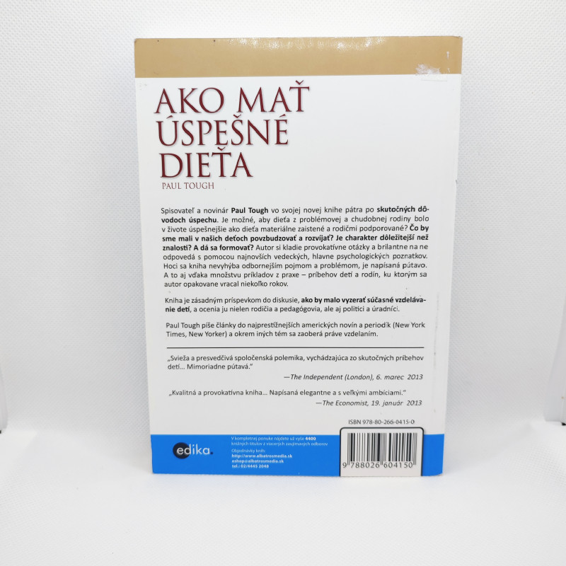 Ako je možné, že dieťa z problémovej a chudobnej rodiny môže byť v živote úspešnejšie ako dieťa materiálne zaistené a rodičmi podporované? Spisovateľ a novinár Paul Tough vo svojej knihe pátra po skutočných dôvodoch úspechu. Je možné, aby dieťa z problémovej a chudobnej rodiny bolo v živote úspešnejšie ako dieťa materiálne zaistené a rodičmi podporované? Čo by sme mali v našich deťoch povzbudzovať a rozvíjať? Je charakter dôležitejší než znalosti? A dá sa formovať? Autor si kladie provokatívne otázky a brilantne na ne odpovedá s pomocou najnovších vedeckých, hlavne psychologických poznatkov. Hoci sa kniha nevyhýba odbornejším pojmom a problémom, je napísaná pútavo. A to aj vďaka množstvu príkladov z praxe – príbehov detí a rodín, ku ktorým sa autor opakovane vracal niekoľko rokov. Kniha je zásadným príspevkom do diskusie, ako by malo vyzerať súčasné vzdelávanie detí, a ocenia ju nielen rodičia a pedagógovia, ale aj politici a úradníci.