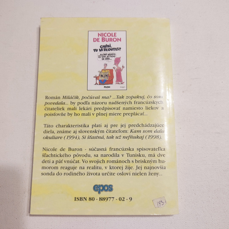 Zaujímavým štýlom napísaná kniha od súčasnej francúzskej spisovateľky, ktorá je už u nás známa humoristickými románmi "Kam som dala okuliare" (1994) a "Si šťastná, tak už nefňukaj" (1998). Aj táto jej najnovšia sonda do rodinného života sa iste stretne so záujmom čitateľskej verejnosti.