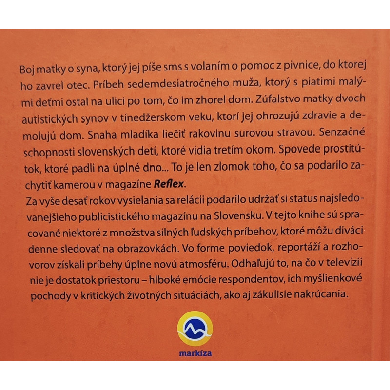 Za vyše desať rokov vysielania sa relácii podarilo udržať si status najsledovanejšieho publicistického magazínu na Slovensku. V tejto knihe sú spracované niektoré z množstva silných ľudských príbehov, ktoré môžu diváci denne sledovať na obrazovkách. Vo forme poviedok, reportáží a rozhovorov získali príbehy úplne novú atmosféru. Odhaľujú to, na čo v televízii nie je dostatok priestoru – hlboké emócie respondentov, ich myšlienkové pochody v kritických životných situáciách, ako aj zákulisie nakrúcania.